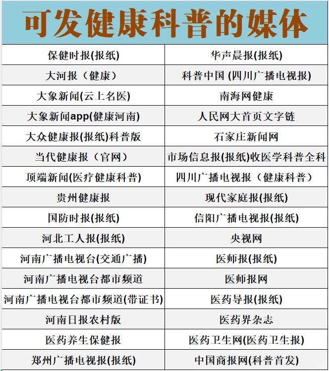 科普健康可投稿发稿的媒体列表
